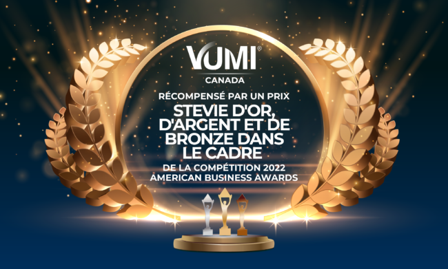 VUMI® RÉCOMPENSÉ PAR UN PRIX STEVIE D’OR, D’ARGENT ET DE BRONZE DANS LE CADRE DE LA COMPÉTITION 2022 AMERICAN BUSINESS AWARDS Nous sommes extrêmement fiers d’annoncer que VUMI a été désigné comme lauréat de trois prix Stevie® – Or, Argent et Bronze – lors de la 20ème édition annuelle des American Business Awards®. Des organisations…